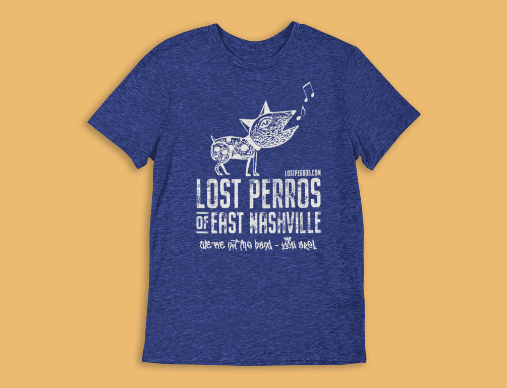 High quality t-shirt in heather blue with The Ballad of the Lost Dogs of East Nashville logo on the front of the shirt.